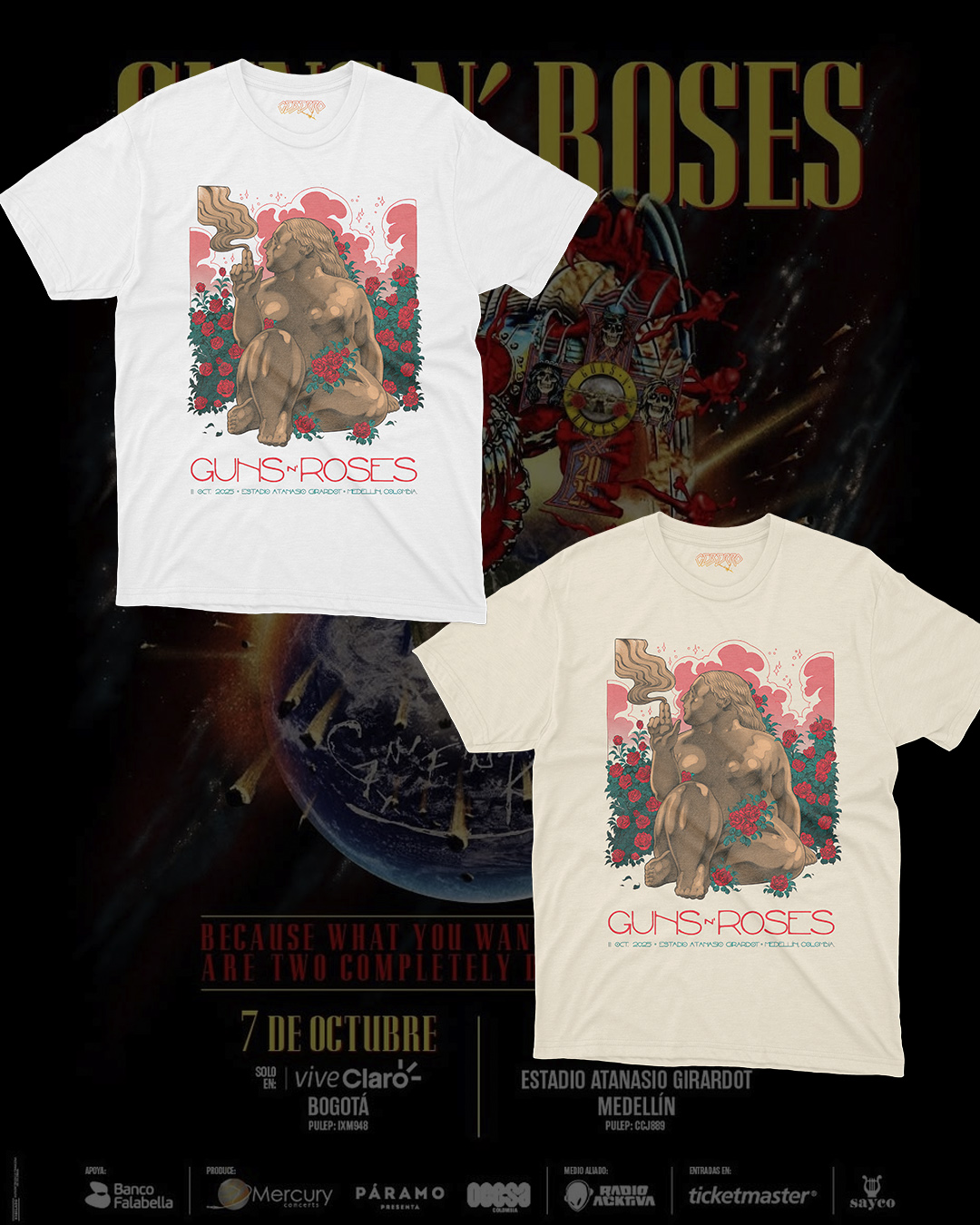 Guns N Roses Concierto Bogota 2025 Estampado Frente y Atrás